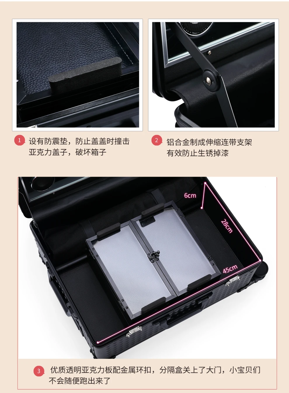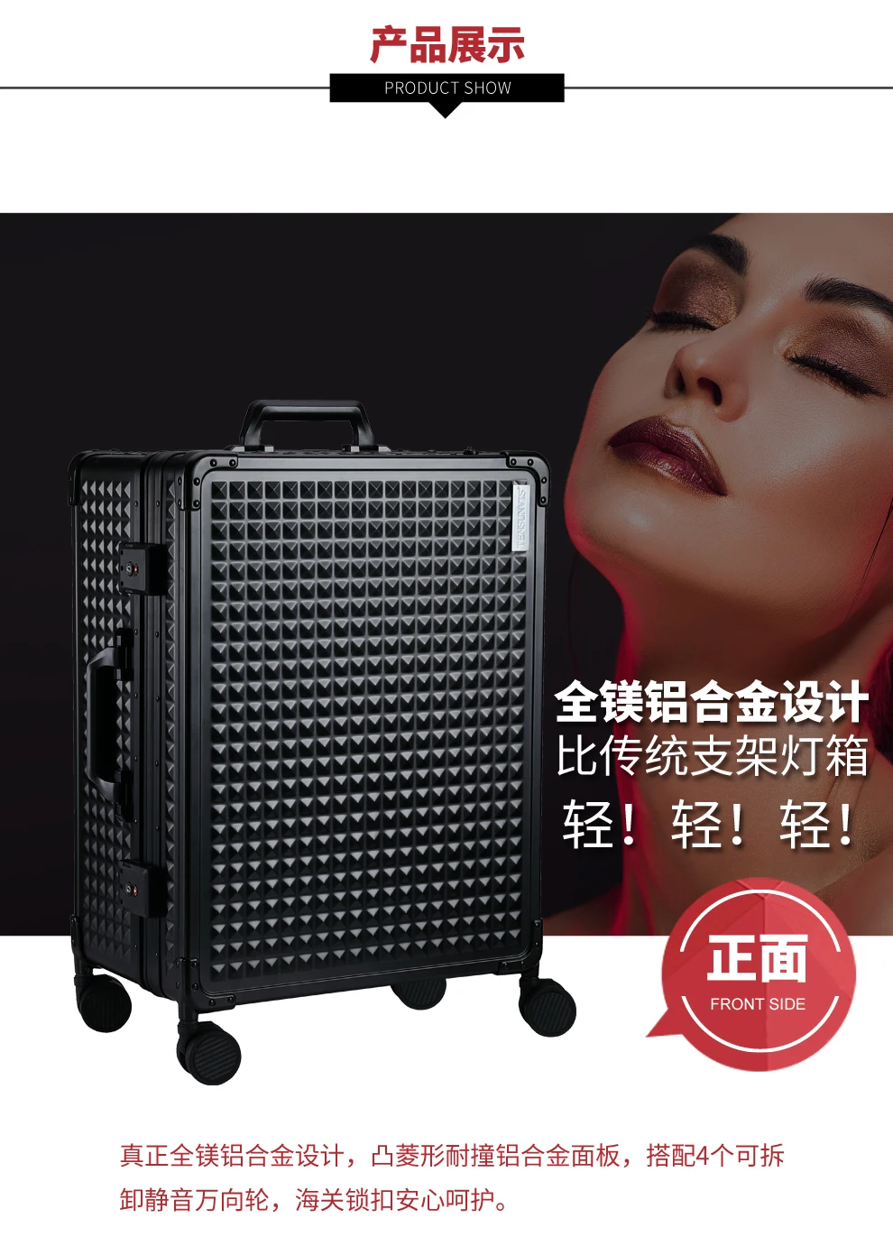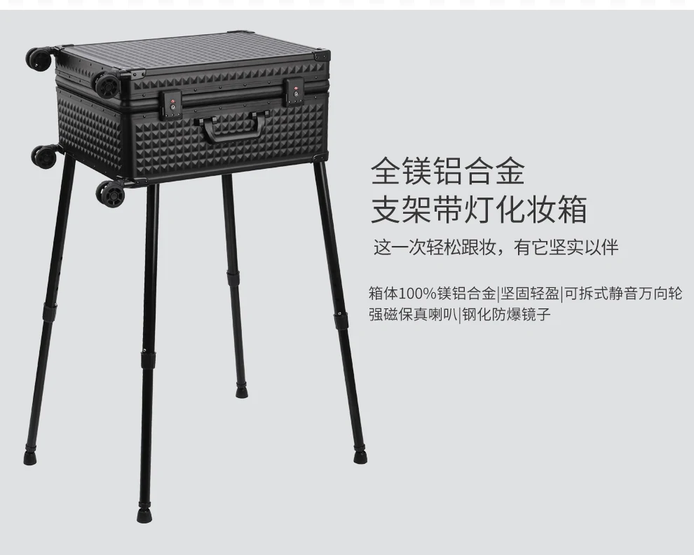All-magnesium aluminum alloy bracket with light makeup case makeup studio workbench universal wheel trolley makeup case professi
