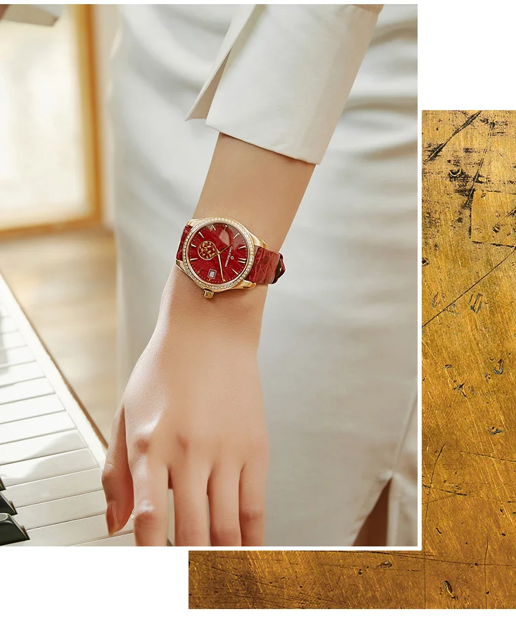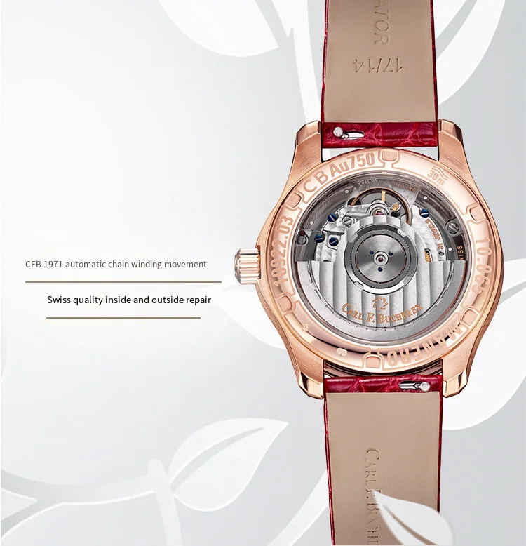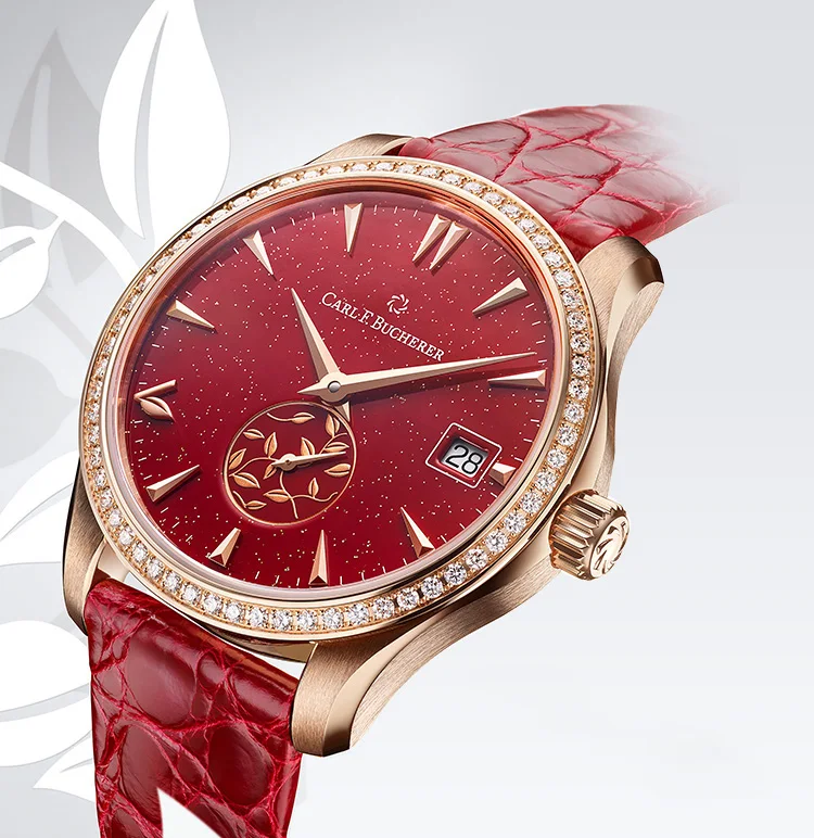 Product Name: Bucherer Swiss Watch Maliron Series Automatic Calendar LOVE Watch Gold Sprinkled Dial Crocodile Belt Full Diamond Mechanical Women's Watch Crimson Diamond Women's Watch 00.10922.03.93.11