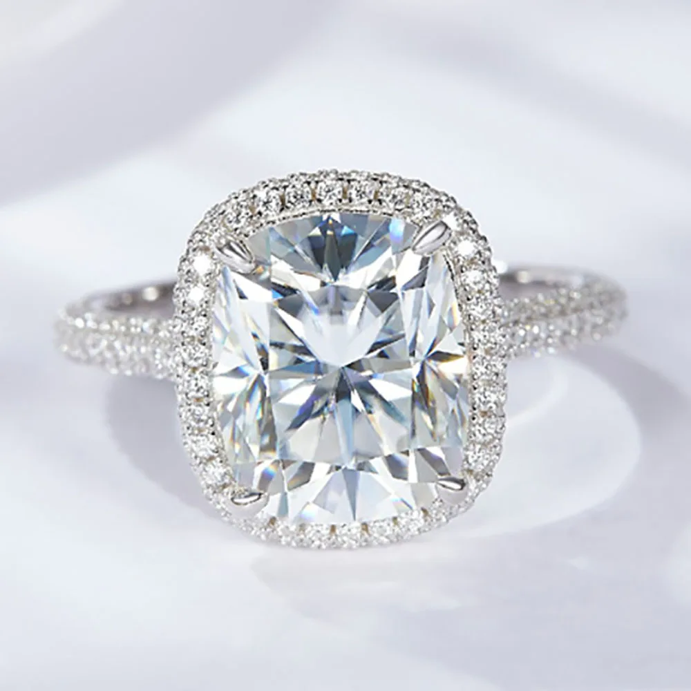 Name : 100% 925 Sterling 5ct Pillow Shaped Full Moissanite Rings